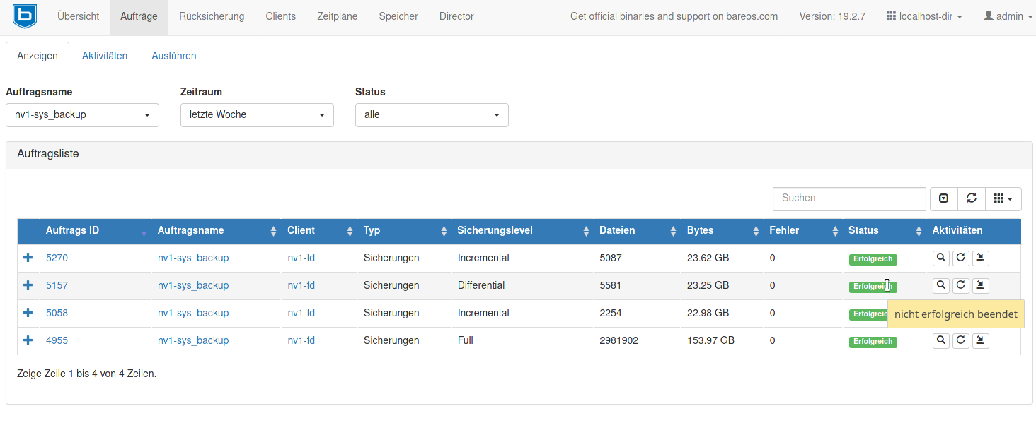 | Additional Information | Sole source seems to be line 1383 (master branch) in /webui/module/Application/language/de_DE.po: https://github.com/bareos/bareos/blob/85a2c521c845327d0de525363b394f28ce65bb62/webui/module/Application/language/de_DE.po#L1383 In branch bareos-19.2 it's line 1327 (https://github.com/bareos/bareos/blob/a78cda310412daf06186614c582e5ff4ac29c384/webui/module/Application/language/de_DE.po#L1327) | ||||
