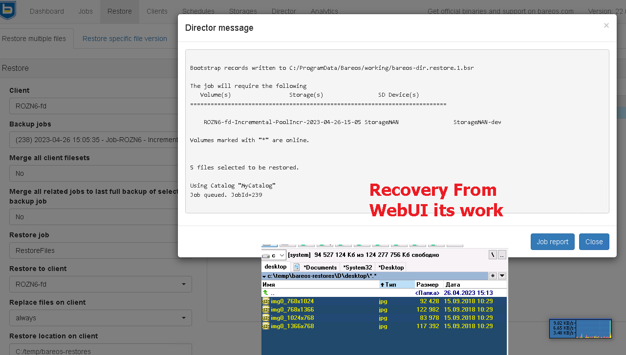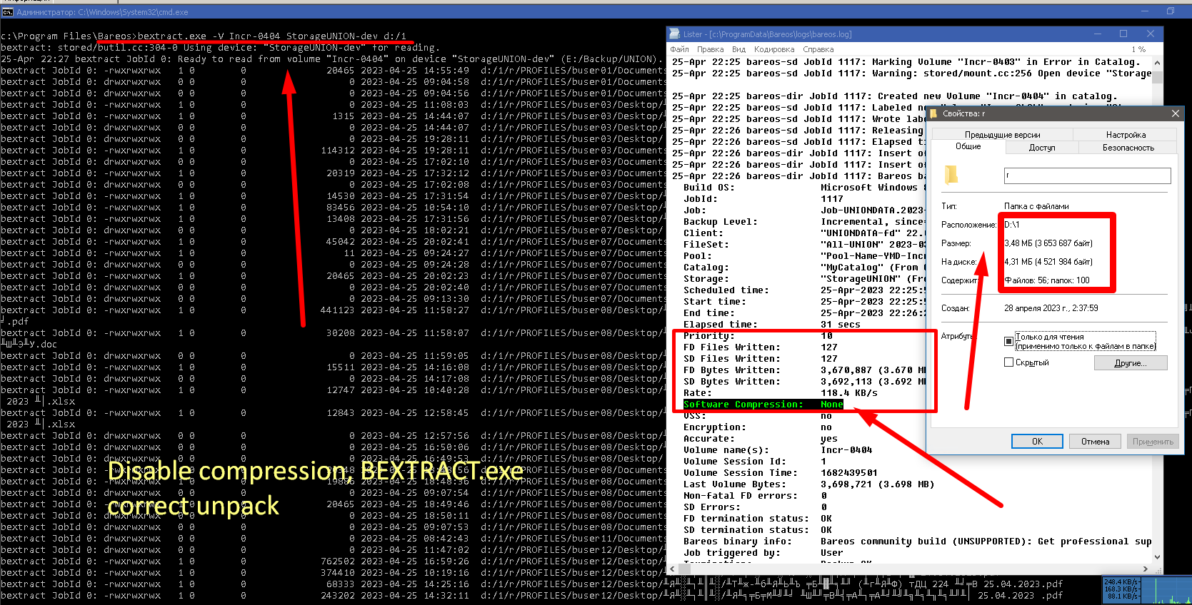 Description | bextractor.exe on Windows10x64 write only one zero file, if enabled any compression (GZIP/LZO/LZ4) in "fileset". Recovery from WEBUI always work! 100%! | ||||