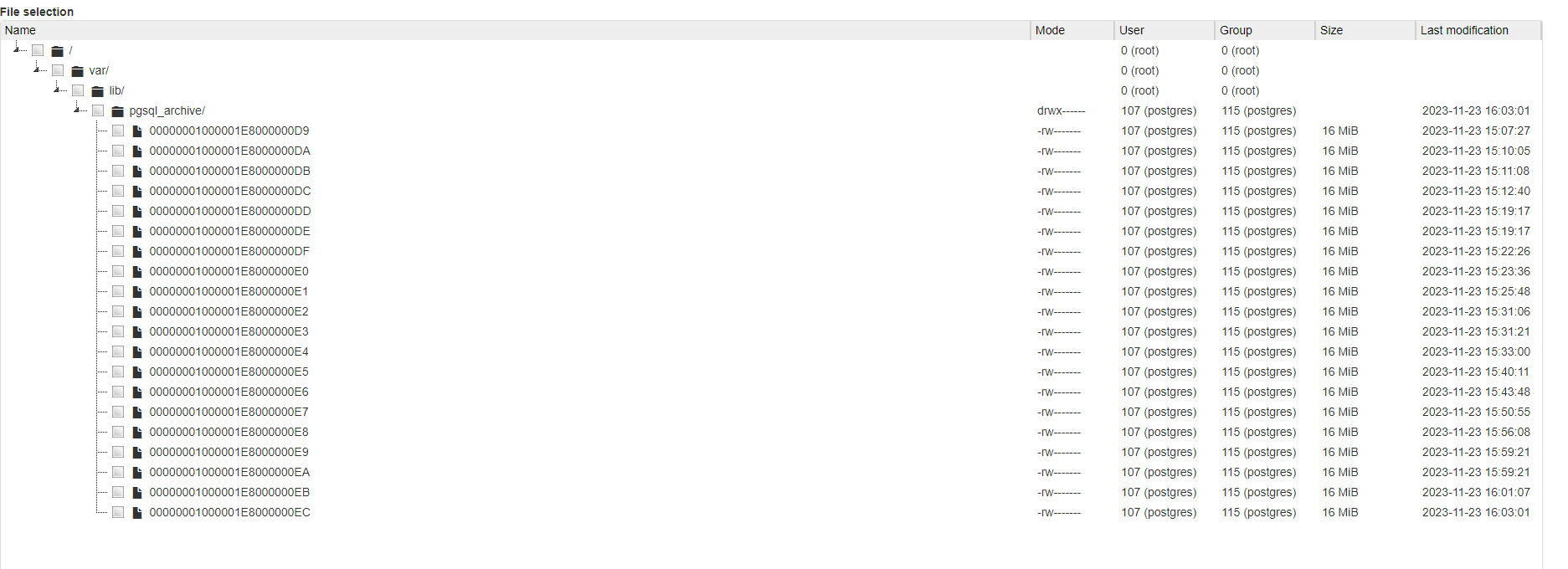 No, this was of a single job (unchecked the boxes to merge). In any case, since it are just wal files that are kept with incremental, wouldn't a differential just work? Or am I missing something in the puzzle? The old jobs (previous plugin with differential as well) seem to work when we test, but maybe we didn't test the right case or something. |