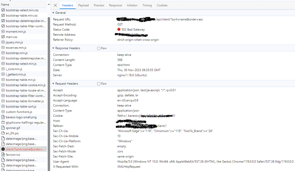 """" For example I can see in request response [ { "clientid": "1", "uname": "22.1.2 (21Nov23) SUSE Linux Enterprise Server 15 SP4,suse", "name": "bareos-fd", "autoprune": "0", "fileretention": "5184000", "jobretention": "15552000", "version": "22.1.2", "version_tooltip": "Current Bareos release.", "version_status": "uptodate", "enabled": true }, """" Please, share your screenshot with this text in debug windows (mostly F12) in the network panel. Maybe I something doing isn't correctly. |