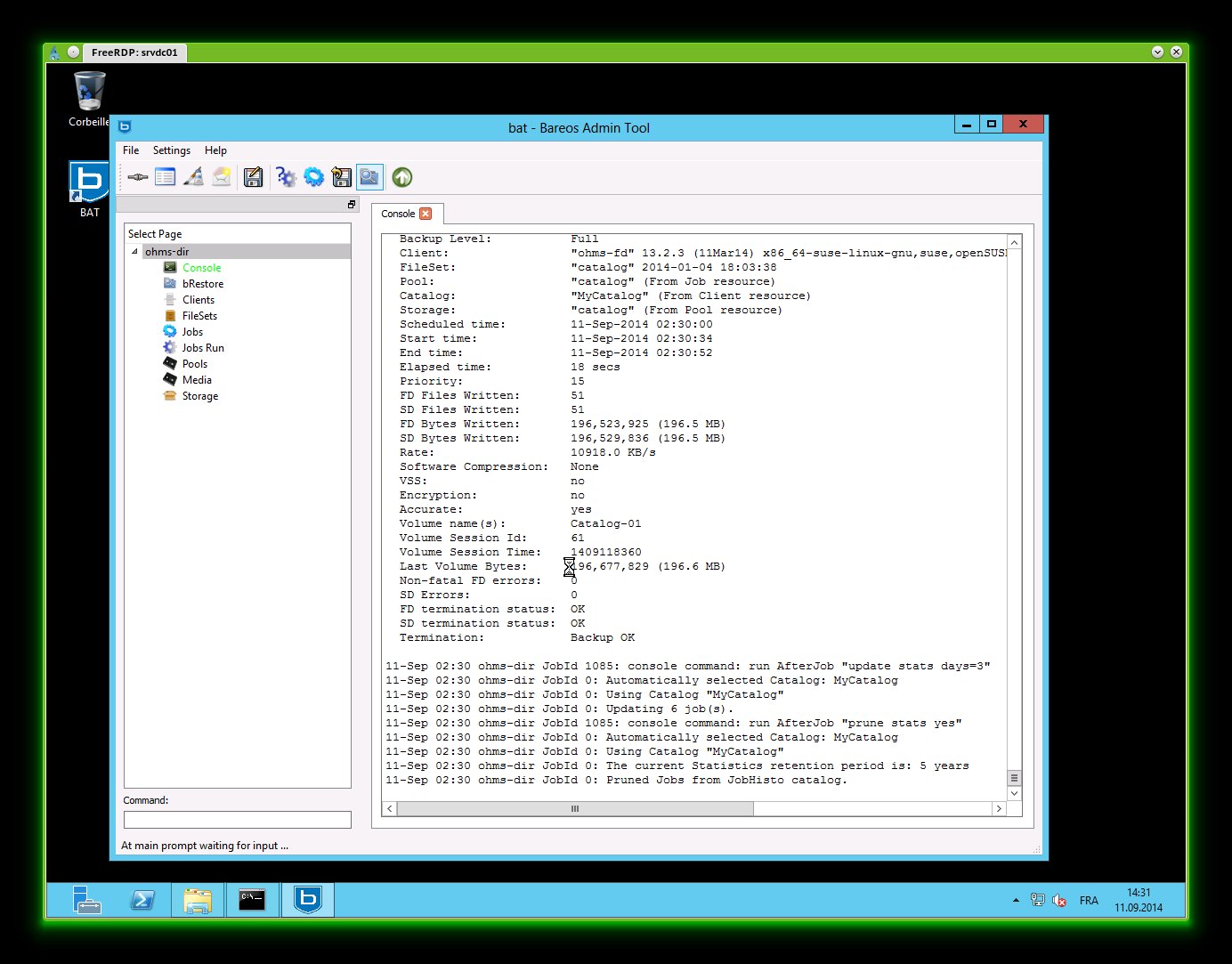 | Description | The first time I run Bat it connects to the director and hangs. When I stop it and restart Bat it works. This happens every time when Bat has to display many messages in the console window. This bug was already reported in the Bacula version. See http://bugs.bacula.org/view.php?id=1832 | ||||